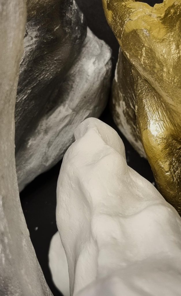 Die präsentierten plastischen Arbeiten übersetzen klassische sowie naturalistische Darstellungen menschlicher Körper in moderne Abstraktion. Die SchülerInnen ließen sich von bekannten Werken großer Künstler, wie zum Beispiel Auguste Rodin oder Michelangelo Buonarroti, inspirieren und interpretierten diese mit einem zeitgenössischen Ansatz neu. In ihren praktischen Arbeiten setzten sich die SchülerInnen mit ihrem Verständnis von den klassischen Werken der Künstler auseinander und übersetzen diese in plastische abstrahierte Formen.