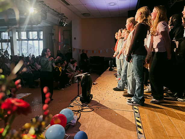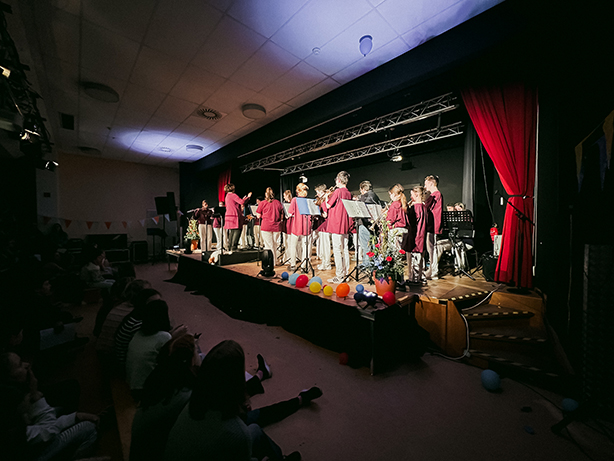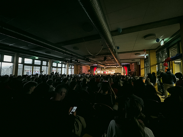 Nach einem langen und ereignisreichen Jubiliumstag hätte man denken können, die Energie sei erschöpft. Doch als sich die Türen zur großen Aula öffneten, strömte ein ausverkauftes Publikum herein – Eltern, Geschwister, Freunde, Ehemalige und Gäste aus dem Stadtteil – und das Frühlingskonzert 2026 nahm seinen Lauf.