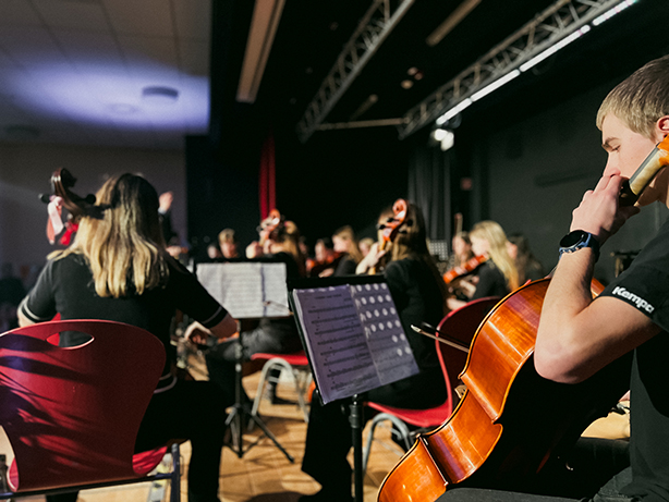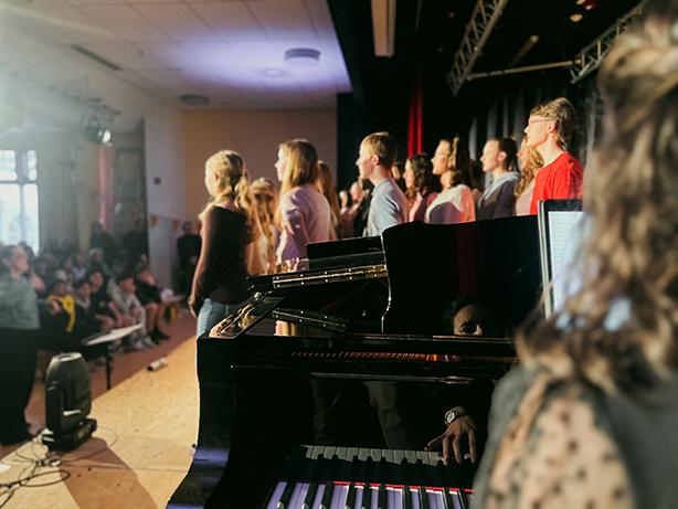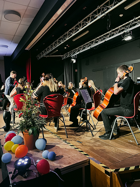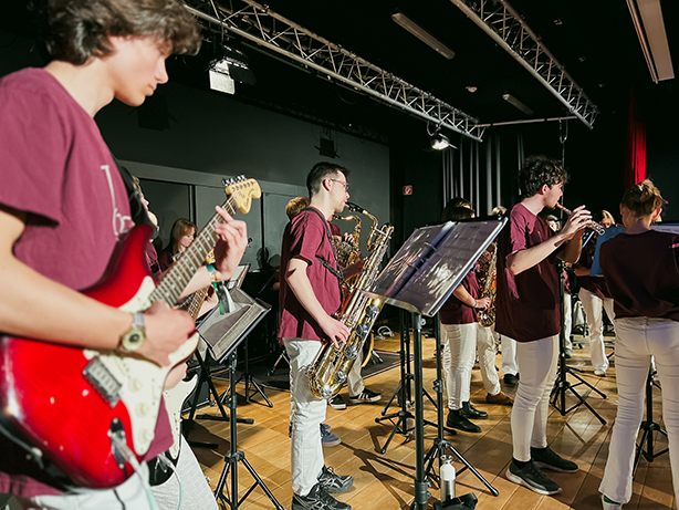 Zum Abschluss des Jubiläumstages füllte sich die große Aula bis auf den letzten Platz – und die Ensembles des Gymnasium Meiendorf zeigten, was in ihnen steckt.